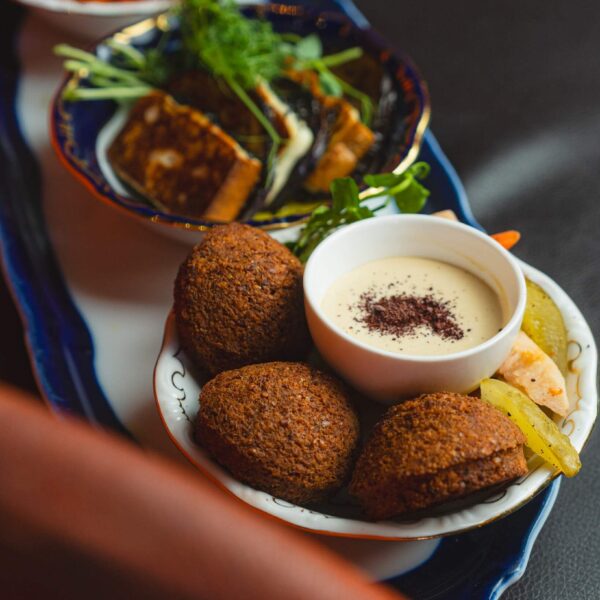 HUF 2 990Traditional chickpea ball with tahini sauce and pickled vegetables.